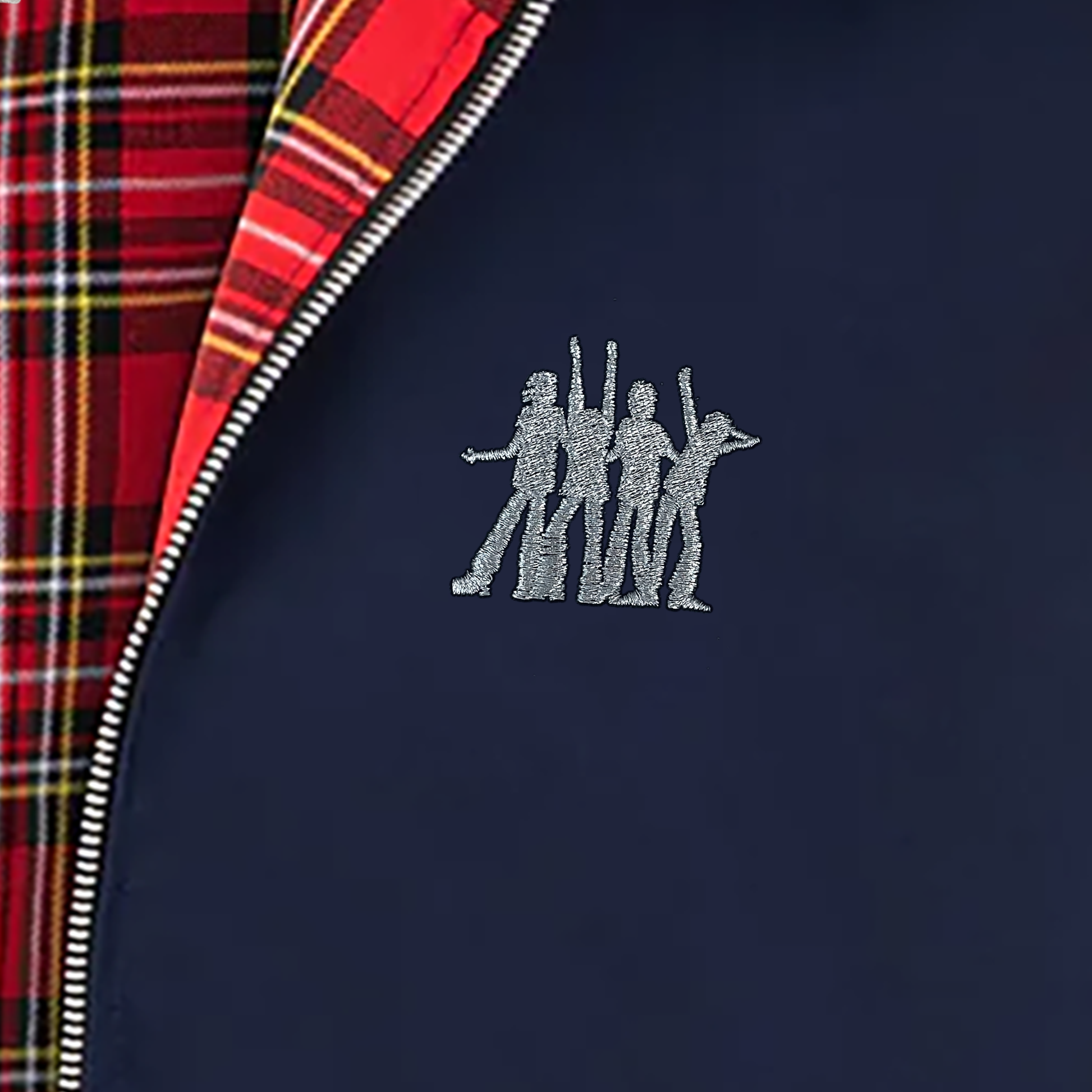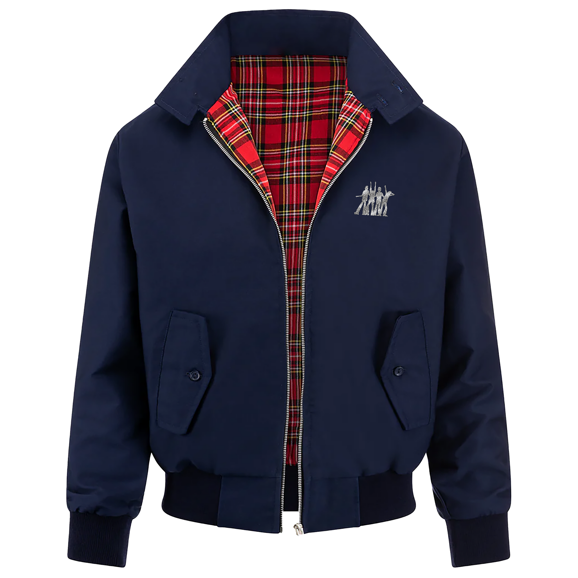 Unisex navy Harrington jacket with disco logo embroidered on the front.